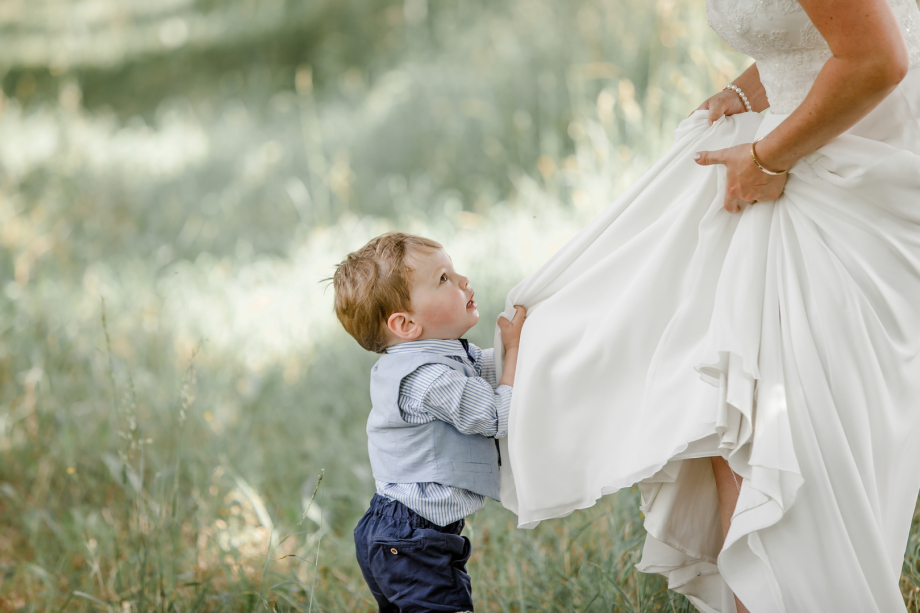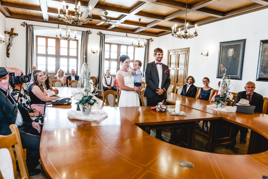 Um so aufregender wird der ganze Tag, den so ein kleines Famiienmitglied will natürlich auch überall dabei sein und selbst bei der Trauung saß der kleine Mann bei seinen Eltern !