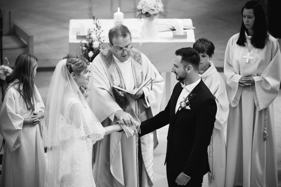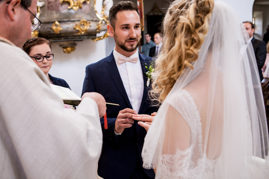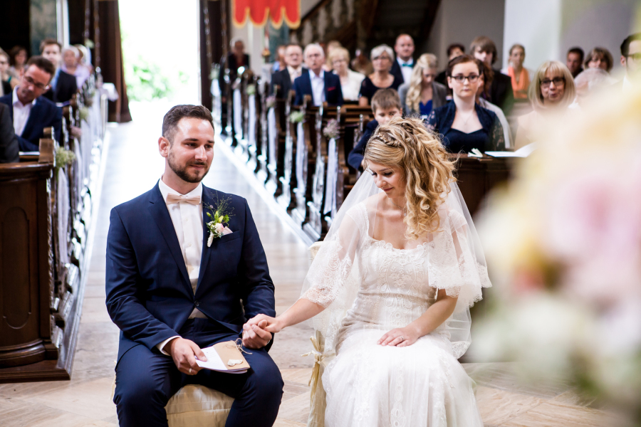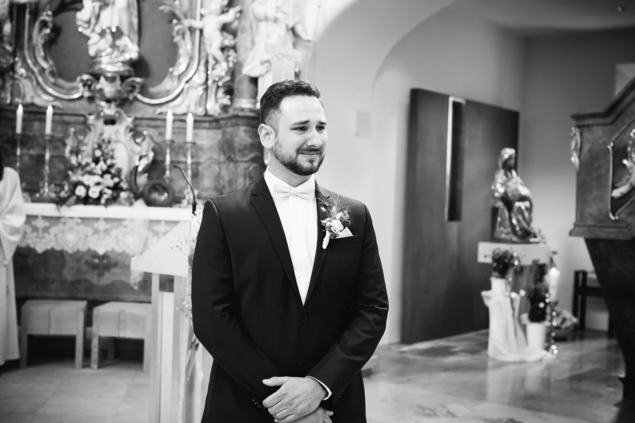 Nach dem Getting Ready ging es für die Braut weiter nach Grettstadt , wo der Bräutigam schon ganz voller Spannung in der Kirche wartete.